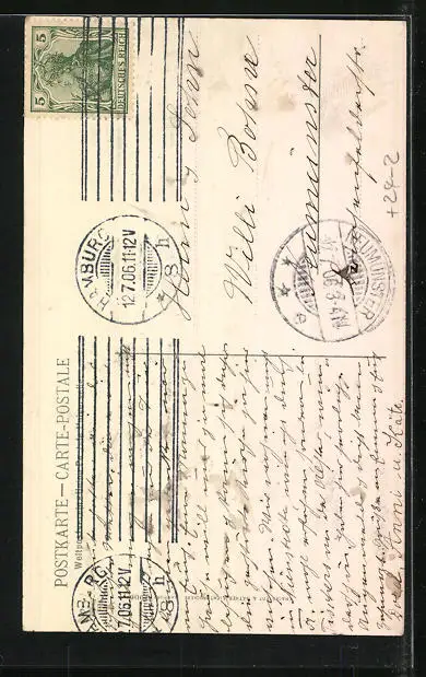 alte Ansichtskarte, gelaufen 1906, Stempelspur, guter Zustand