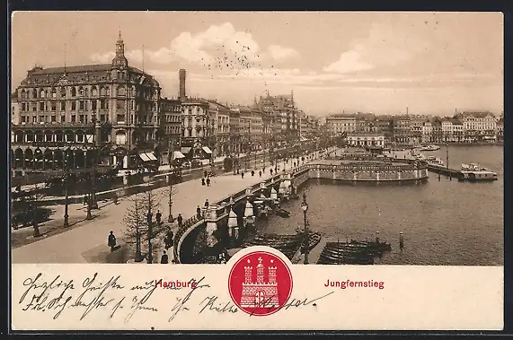 AK Hamburg-Neustadt, Der Jungfernstieg, Wappen