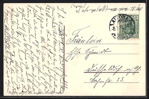 alte Ansichtskarte, gelaufen 1915, Stempelspur, guter Zustand