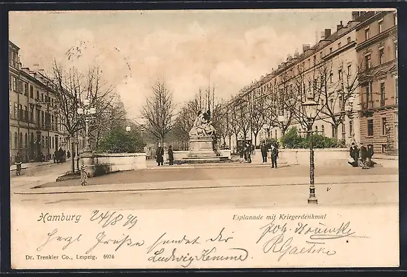 AK Hamburg-Neustadt, Esplanade mit Kriegerdenkmal