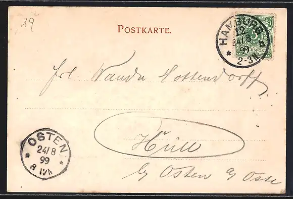 alte Ansichtskarte, gelaufen 1899, guter Zustand