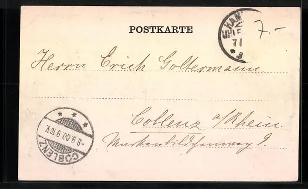 alte Ansichtskarte, gelaufen 1900, Briefmarke entfernt, guter Zustand