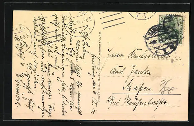 alte Ansichtskarte, gelaufen 1914, Stempelspur, guter Zustand