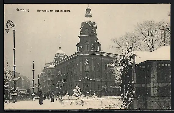 AK Hamburg-Neustadt, Hauptpost am Stephansplatz im Winter