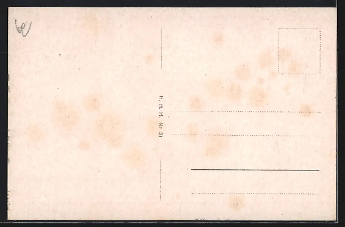 Personenbezogene Daten auf der Rückseite der Karte wurden durch blauen Textmarker unkenntlich gemacht. Die blauen Stellen sind auf die Vorderseite durchgeweicht und wirken sich negativ auf das Postkartenfoto aus