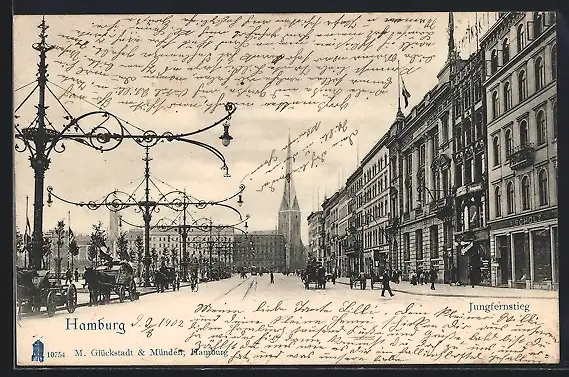 AK Hamburg-Neustadt, Jungfernstieg, Strassenpartie mit Kirche