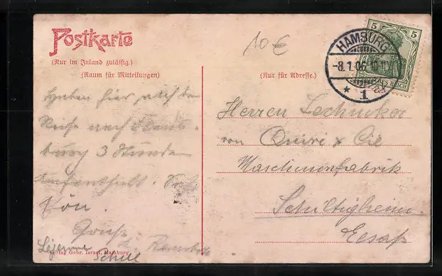 alte Ansichtskarte, gelaufen 1906, guter Zustand