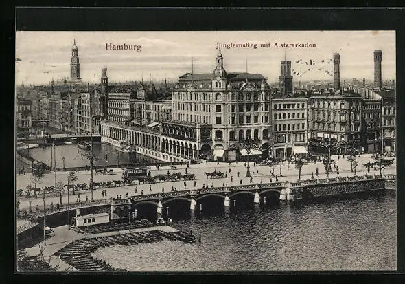 AK Hamburg-Neustadt, Jungfernstieg mit Alsterarkaden