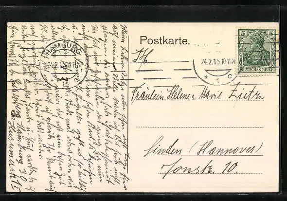 alte Ansichtskarte, gelaufen 1915, Stempelspur, guter Zustand