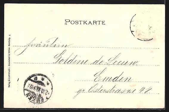 alte Ansichtskarte, gelaufen 1900, Briefmarke entfernt, guter Zustand