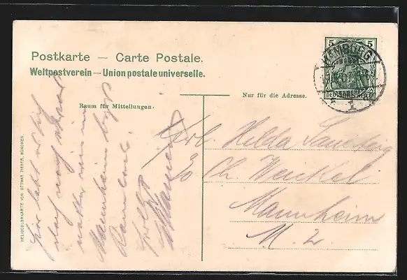 alte Ansichtskarte, gelaufen 1907, Stempelspur, guter Zustand