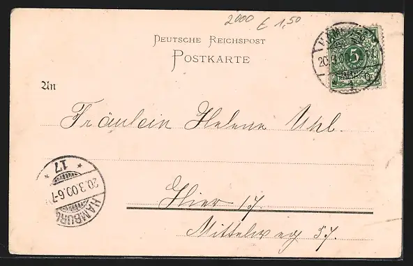 alte Ansichtskarte, gelaufen 1900, guter Zustand