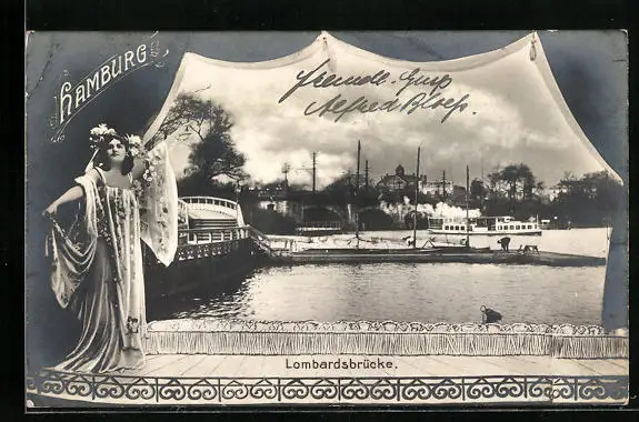 AK Hamburg-Neustadt, Lombardsbrücke mit Ausflugsdampfer