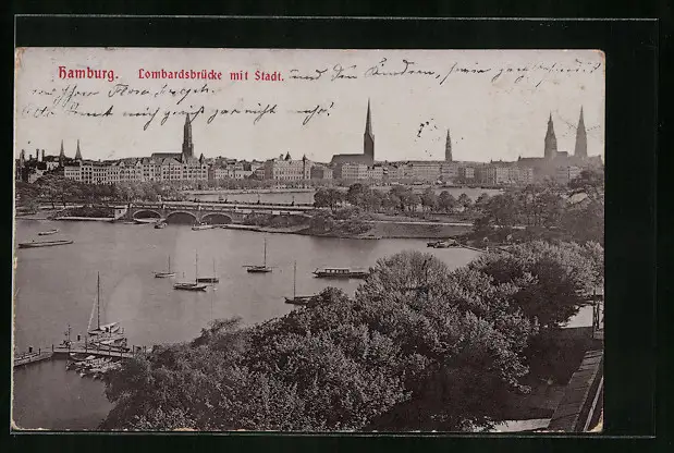 AK Hamburg-Neustadt, Lombardsbrücke mit Stadt