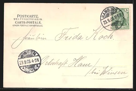 alte Ansichtskarte, gelaufen 1903, Bugspur re. mittig, guter Zustand