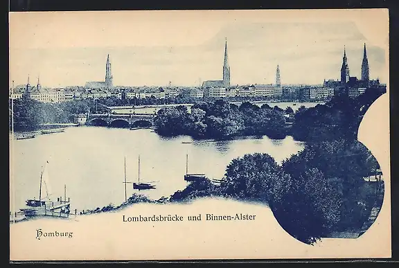 AK Hamburg-Neustadt, Lombardsbrücke und Binnen-Alster