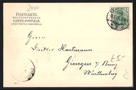alte Ansichtskarte, gelaufen 1908, guter Zustand