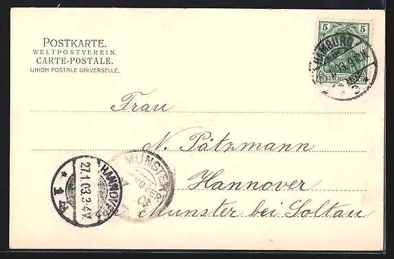 alte Ansichtskarte, gelaufen 1903, guter Zustand