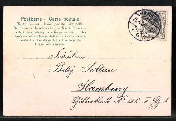 alte Ansichtskarte, gelaufen 1905, guter Zustand