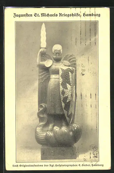 AK Hamburg-Neustadt, St. Michaels Kriegshilfe, Statue Krieger mit Schwert und Schild