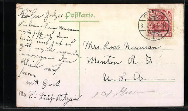 alte Ansichtskarte, gelaufen 1908, Einriss oben re., guter Zustand