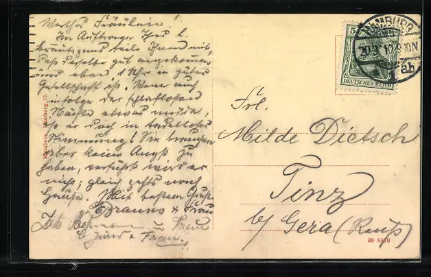 alte Ansichtskarte, gelaufen 1910, guter Zustand
