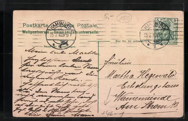 alte Ansichtskarte, gelaufen 1910, Stempelspur, guter Zustand