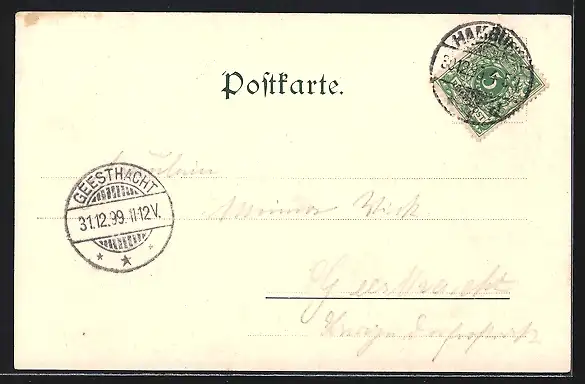 alte Ansichtskarte, gelaufen 1899, guter Zustand