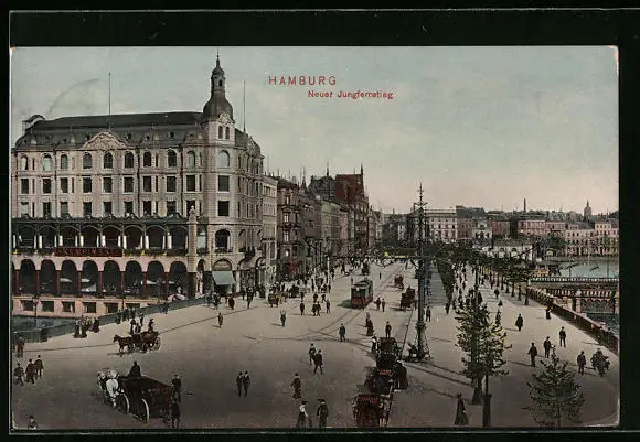 AK Hamburg-Neustadt, Strassenbahn auf dem Jungfernstieg
