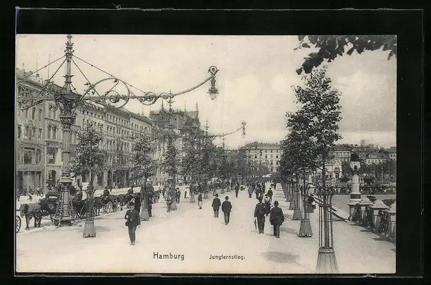 AK Hamburg-Neustadt, Strassenpartie am Jungfernstieg mit flanierenden Menschen