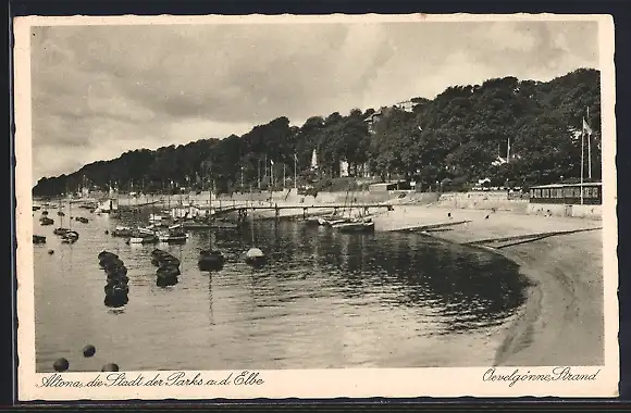 AK Hamburg-Oevelgönne, Strandpartie mit Booten