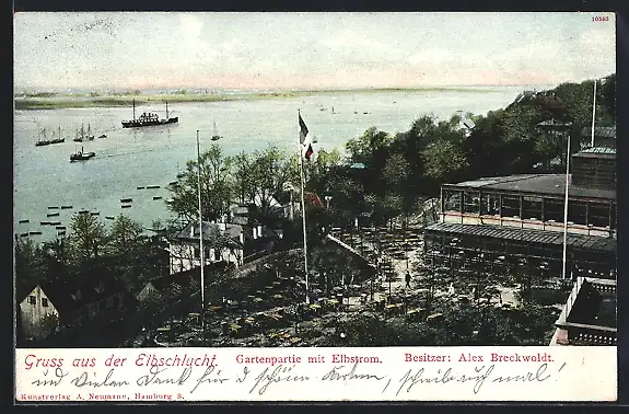 AK Hamburg-Othmarschen, Gartenpartie mit Elbstrom, Besitzer: Alex Breckwoldt