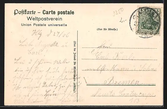 alte Ansichtskarte, gelaufen 1906, guter Zustand