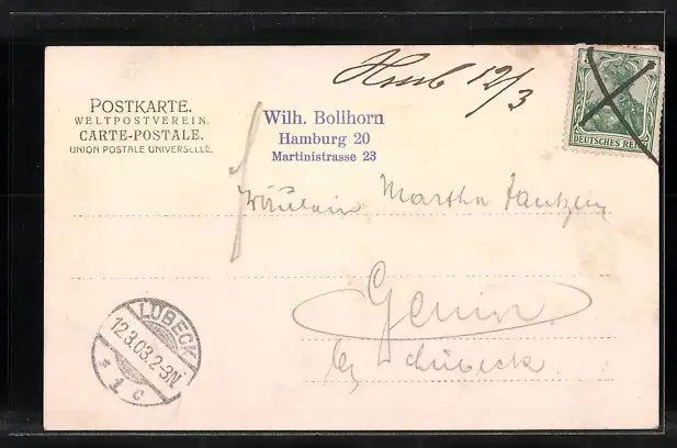 alte Ansichtskarte, gelaufen 1903, guter Zustand