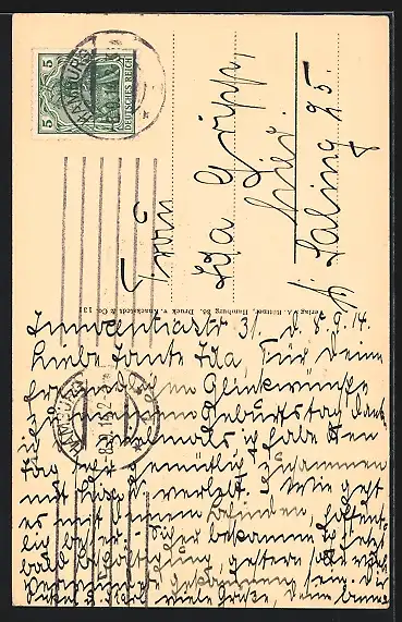 alte Ansichtskarte, gelaufen 1914, Stempelspur, guter Zustand