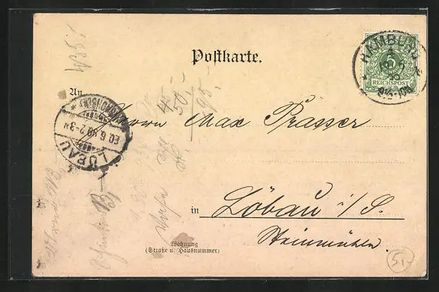 alte Ansichtskarte, gelaufen 1899, Eckknicke li. u. re., guter Zustand