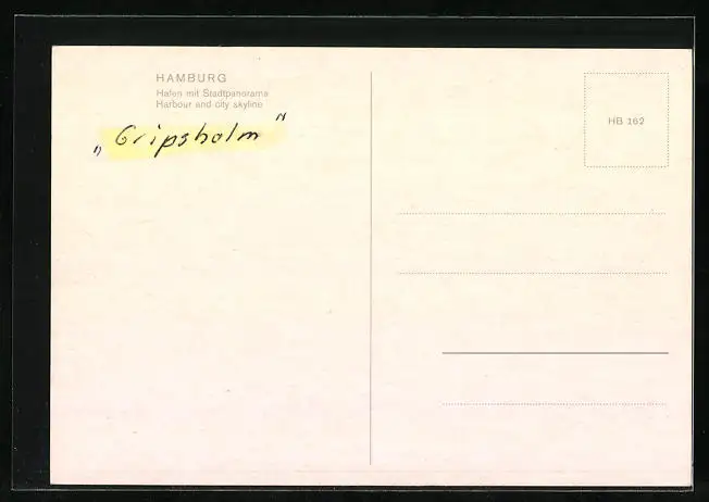 Personenbezogene Daten auf der Rückseite der Karte wurden durch blauen Textmarker unkenntlich gemacht. Die blauen Stellen sind auf die Vorderseite durchgeweicht und wirken sich negativ auf das Postkartenfoto aus