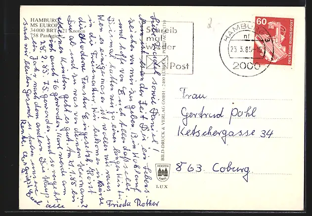 alte Ansichtskarte, gelaufen 1985, guter Zustand