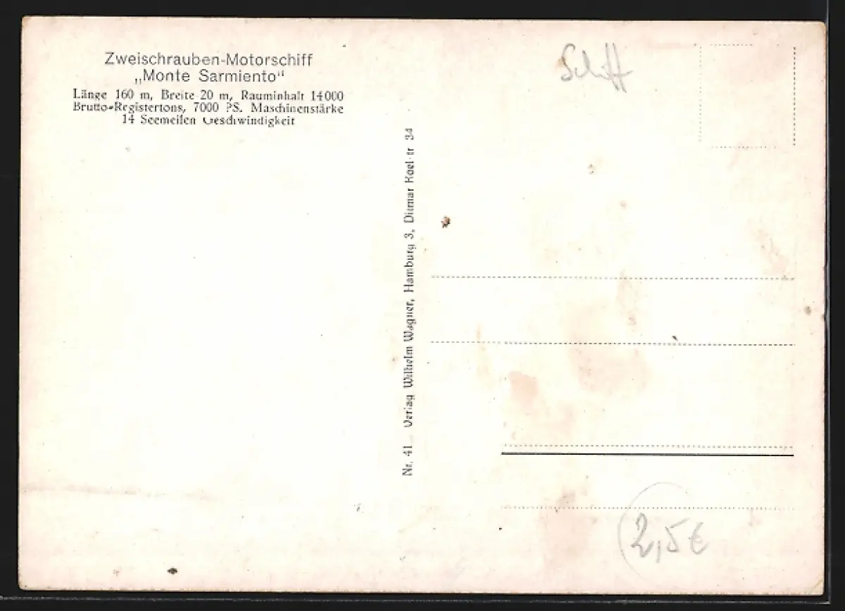 AK Hamburg, Passagierschiff Monte Sarmiento im Hafen