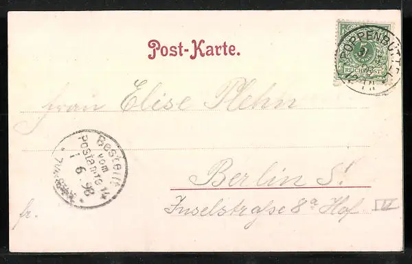 alte Ansichtskarte, gelaufen 1898, Stempelspur, sonst guter Zustand