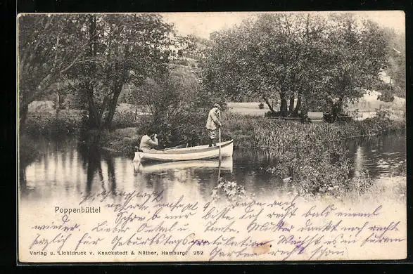AK Hamburg-Poppenbüttel, Männer auf einem Ruderboot