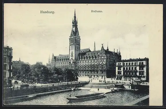 AK Hamburg, Rathaus-Panorama, vom Wasser gesehen