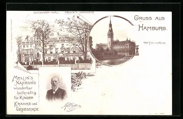 AK Hamburg, Rathaus, Wickham-Hall, Mellins Wohnsitz
