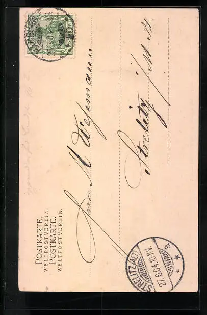 alte Ansichtskarte, gelaufen 1904, Eckknick li. oben, minimaler Einriss re. unten, guter Zustand
