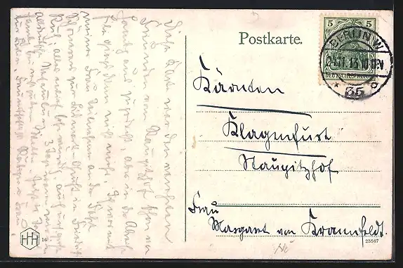 alte Ansichtskarte, gelaufen 1913, Eckknick oben li., guter Zustand