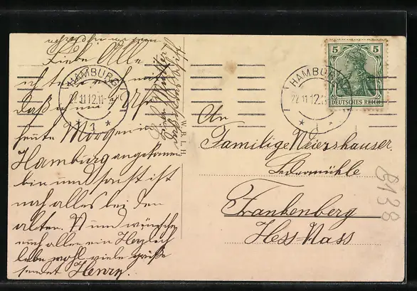 gelaufen 1912, Eckknick li. unten, Stempelspur, guter Zustand