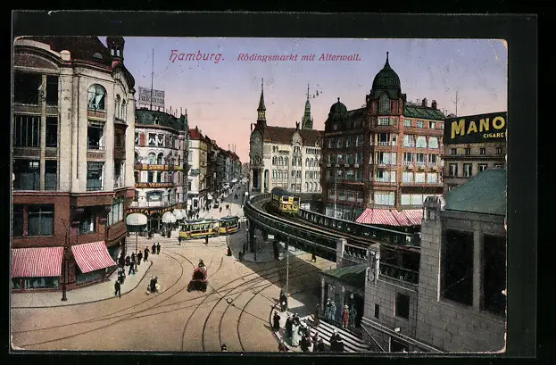 AK Hamburg, Rödlingsmarkt mit Alterwall und Strassenbahn