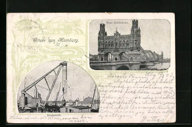 AK Hamburg-Rothenburgsort, Krahnhöft, Neue Elbbrücke