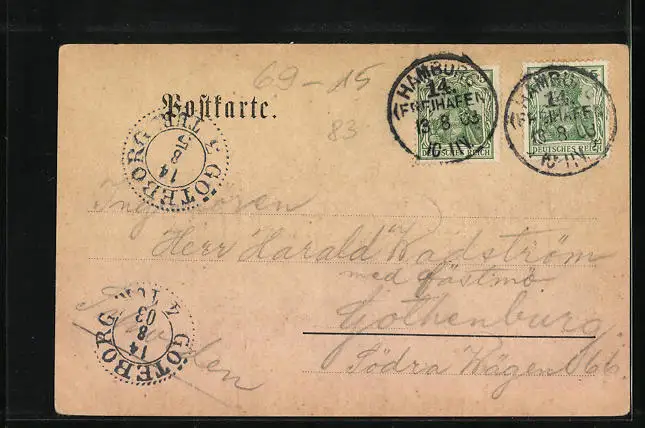 alte Ansichtskarte, gelaufen 1903, Stempelspur, Eckknick re. unten, guter Zustand