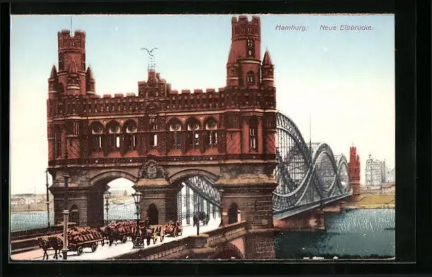 AK Hamburg-Rothenburgsort, Neue Elbbrücke mit Pferdewagen